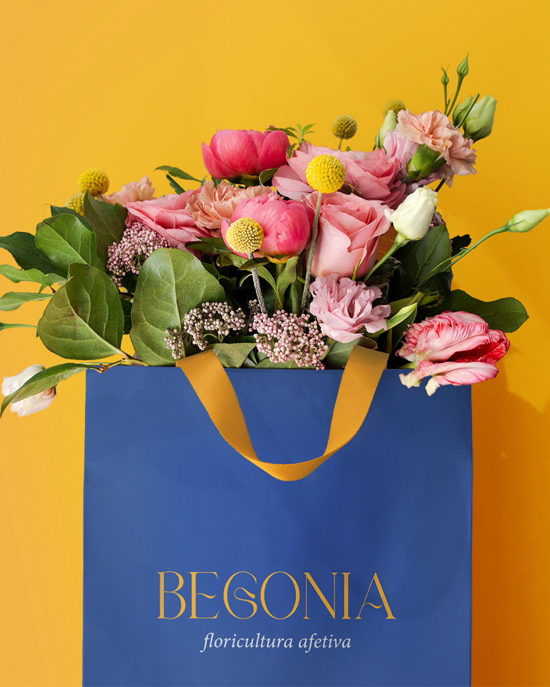 A identidade visual desenvolvida incorpora a felicidade, delicadeza e cordialidade, características da begônia – flor que simboliza a inocência e a lealdade do verdadeiro amor. A Begônia pretende criar conexões afetivas e oferecer emoções genuínas para momentos especiais com um visual marcante que a destaca no mercado.